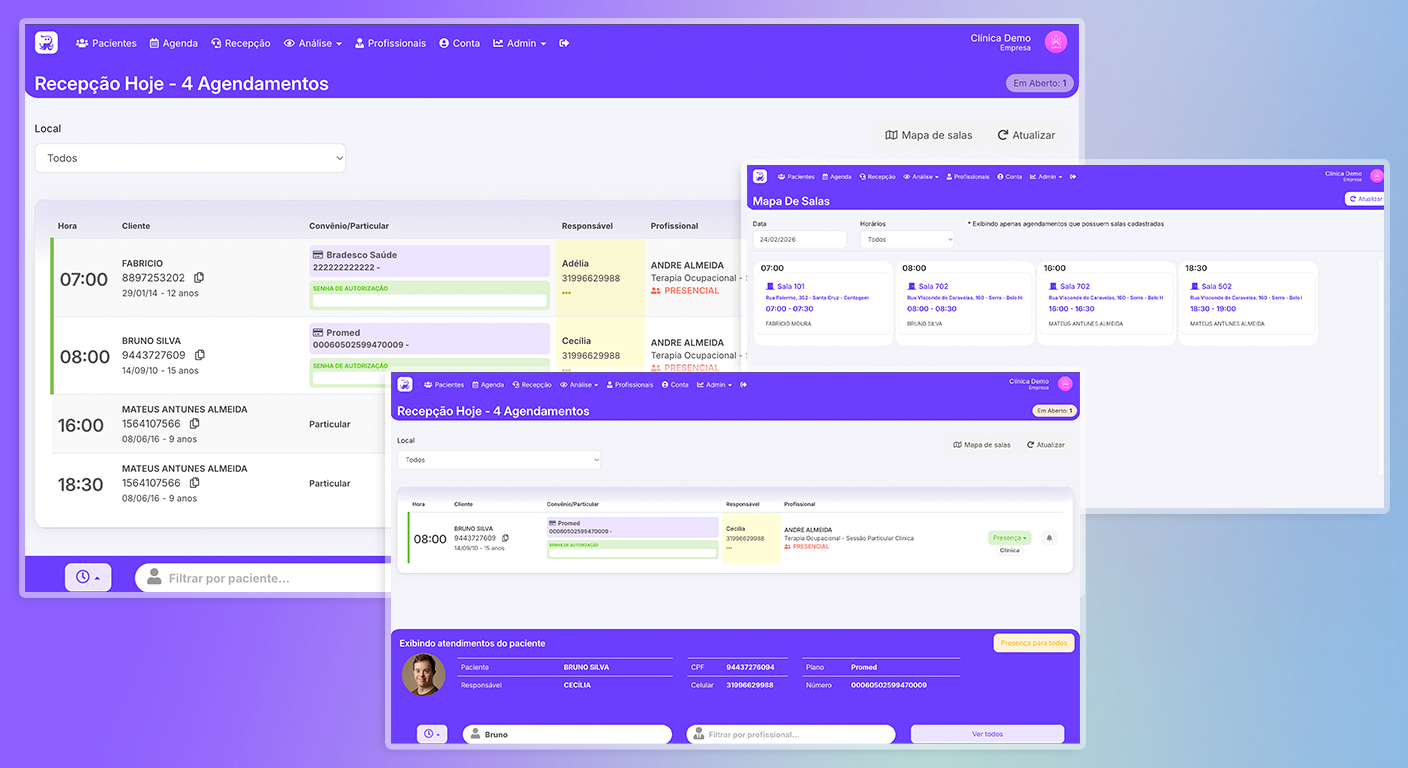 Recepção e Mapa de Salas