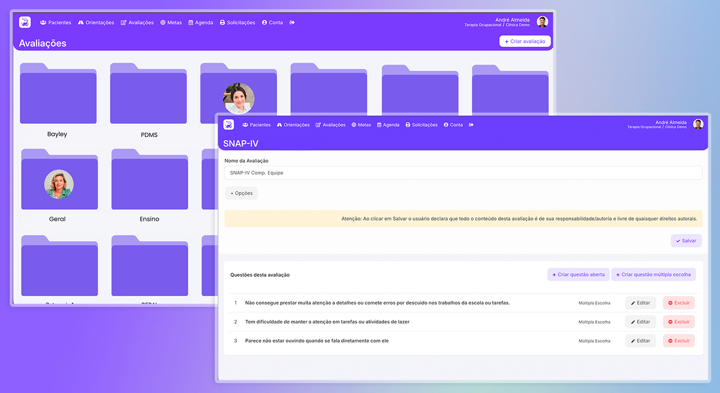 Avaliações do Paciente